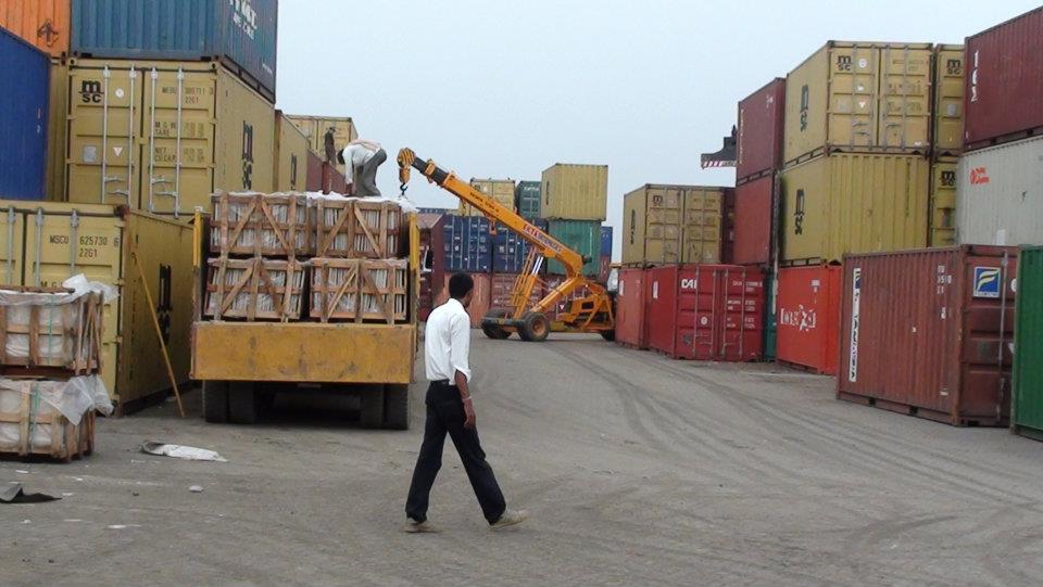 Raw blocks purchased from quarries are received at the gantry yard and are unloaded with the help of gantry cranes.