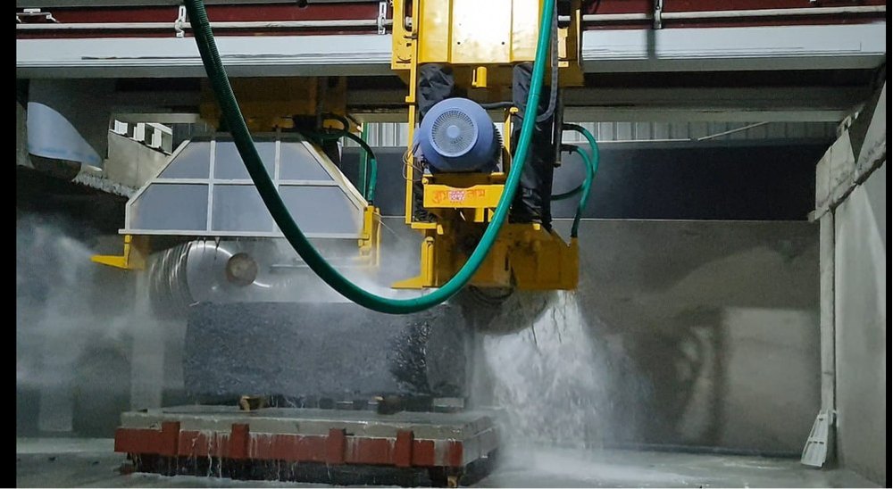 Big slabs are lifted with the help of E.O.T and transferred to automatic cutting machine or manual cutting machine to cut the slabs into required tile size.